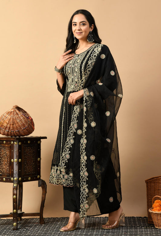 Sold outBlack Kurta Pant Dupatta Suit Set