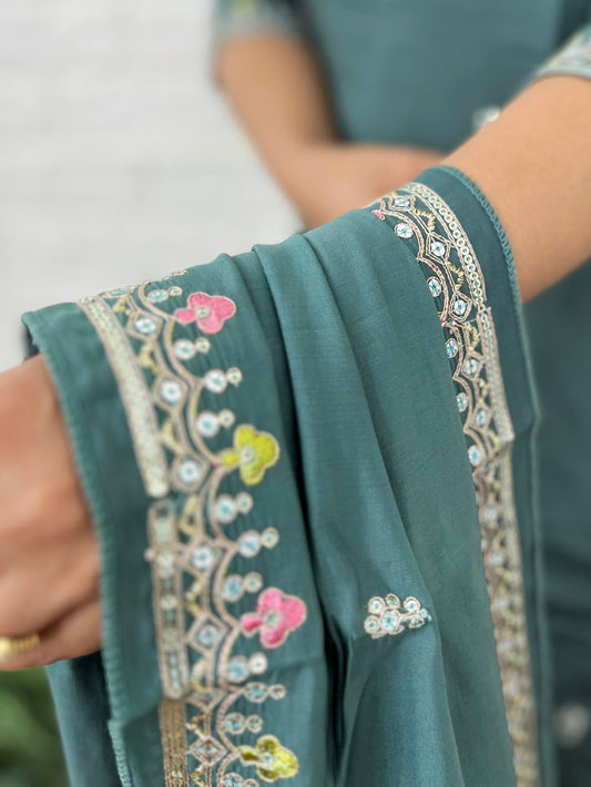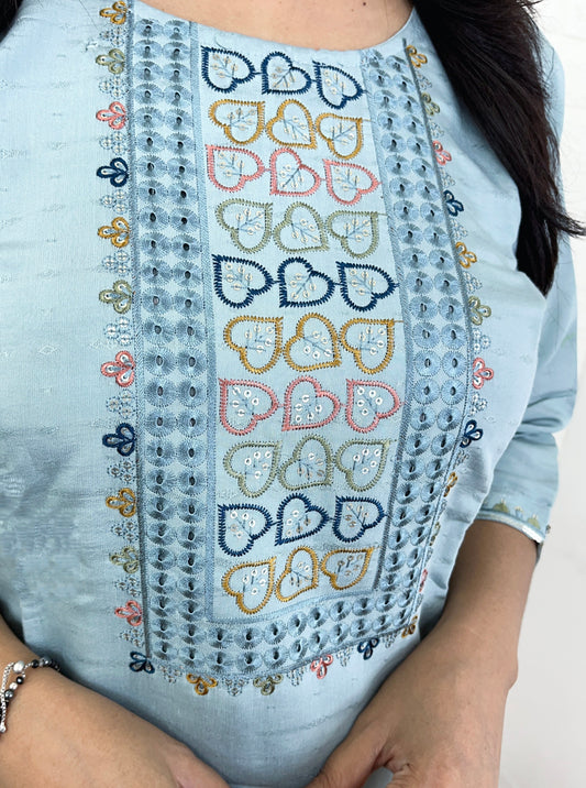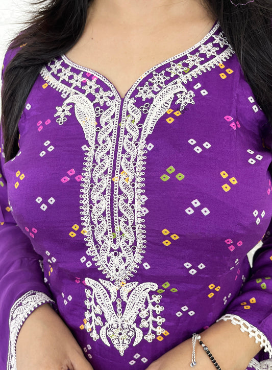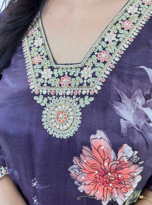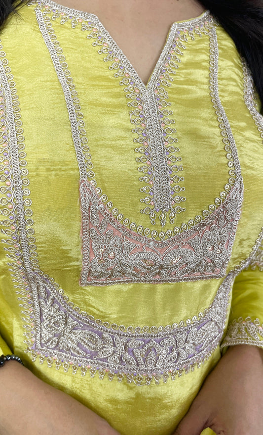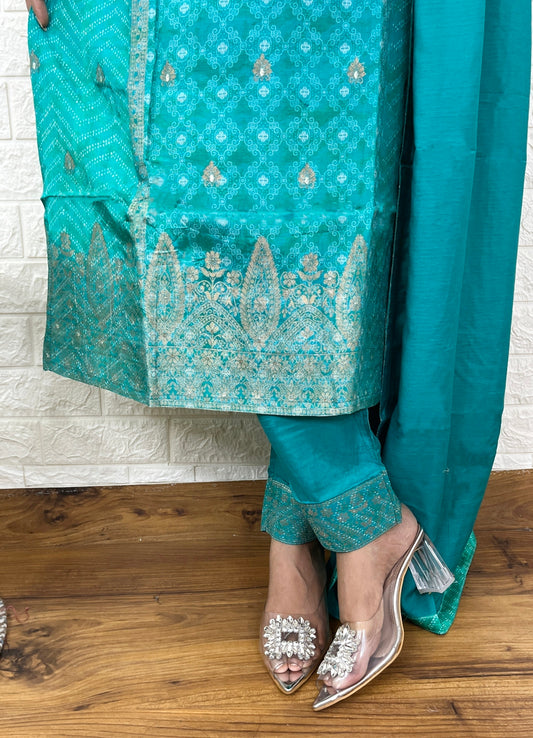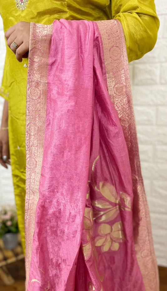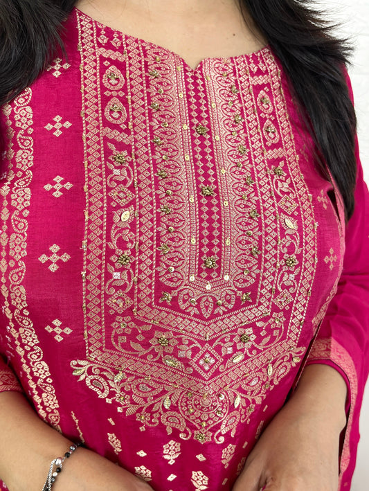Rani Pink Banarasi Kurta Suit Set with Gold Embroidery