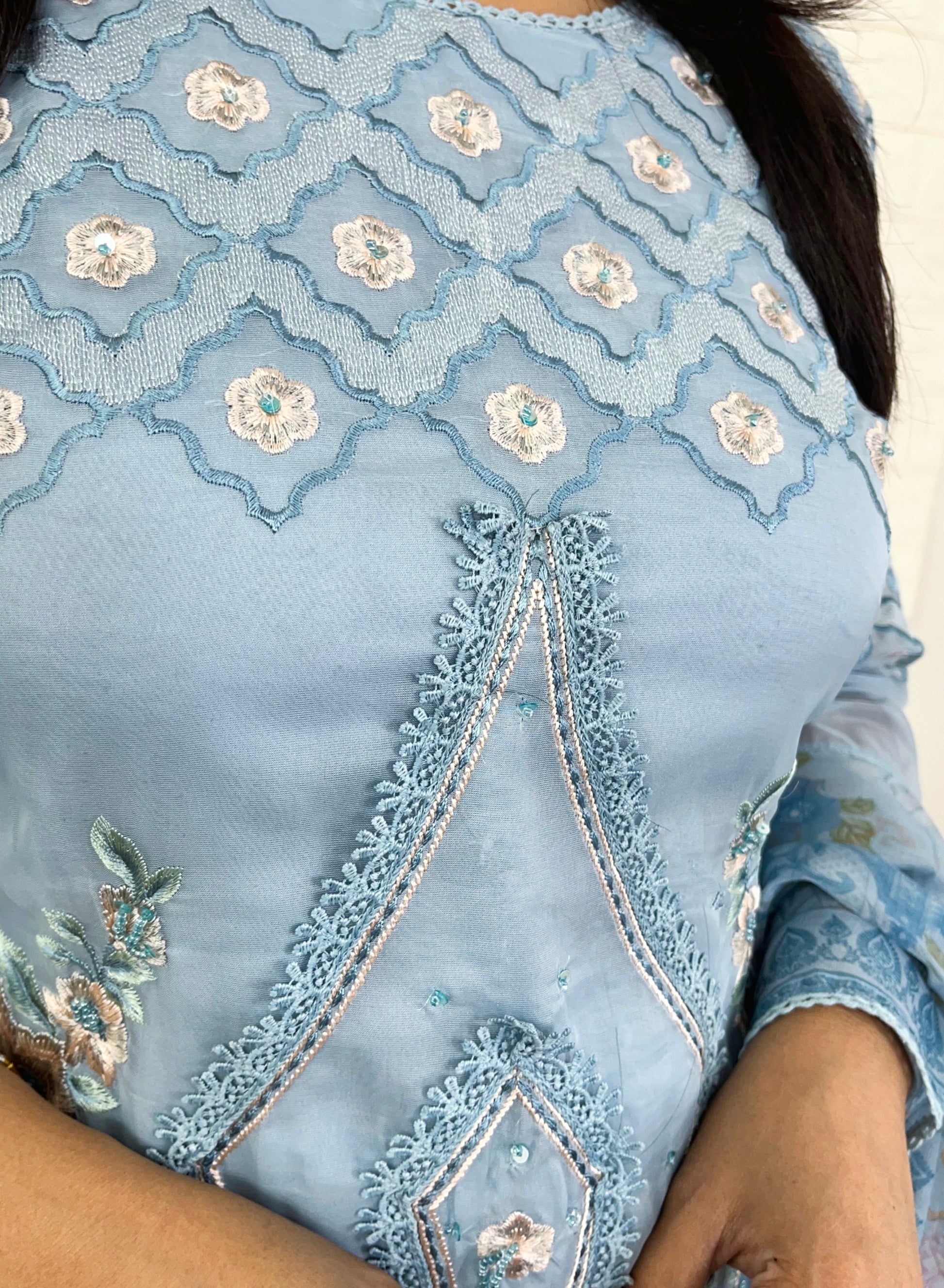 🌟 Powder Blue Organza Straight Suit Set 🌟
