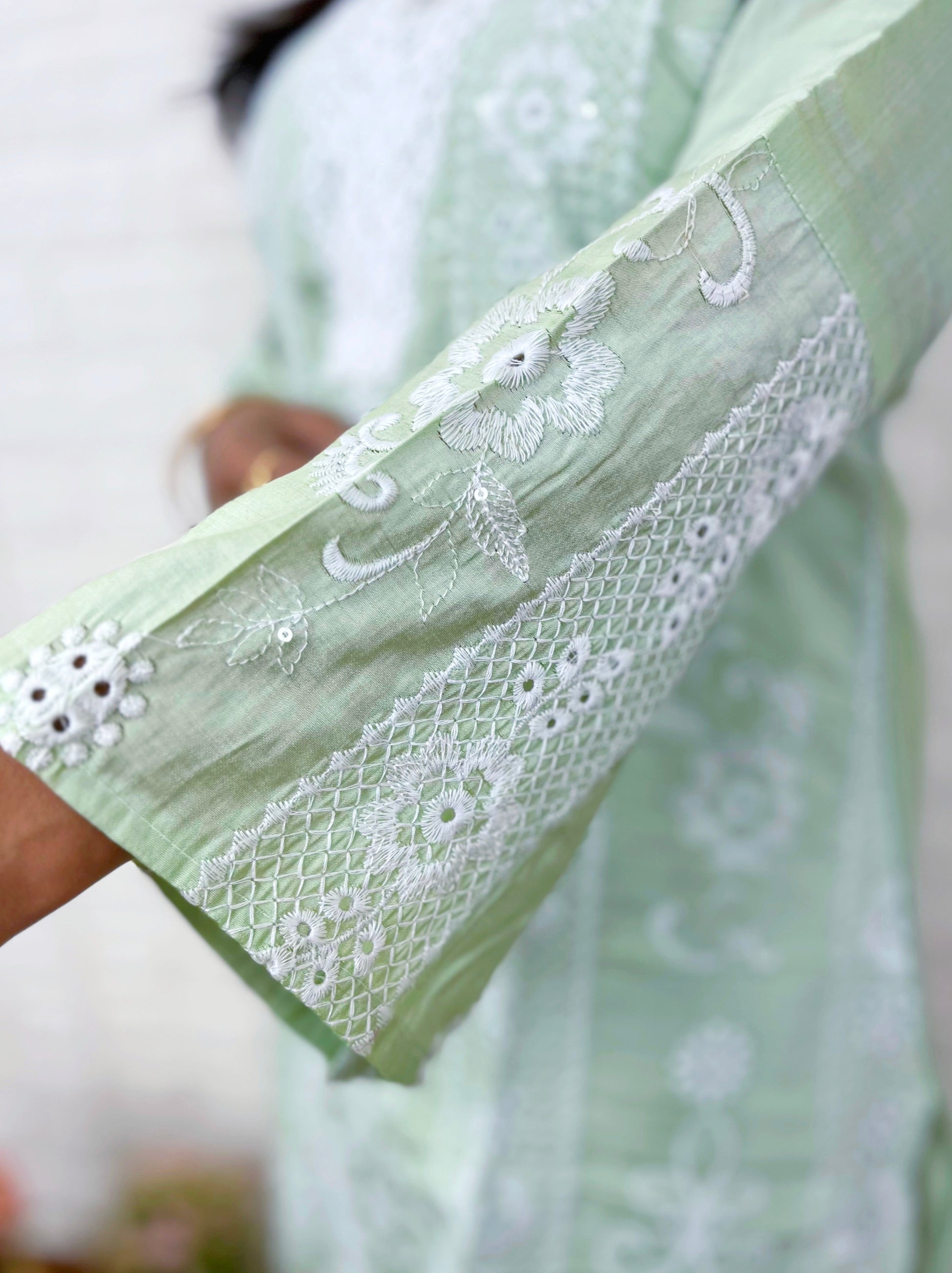 Crafted from premium muslin, known for its lightweight, breathable, and smooth texture. Muslin provides a soft drape that enhances comfort while ensuring a graceful appearance.