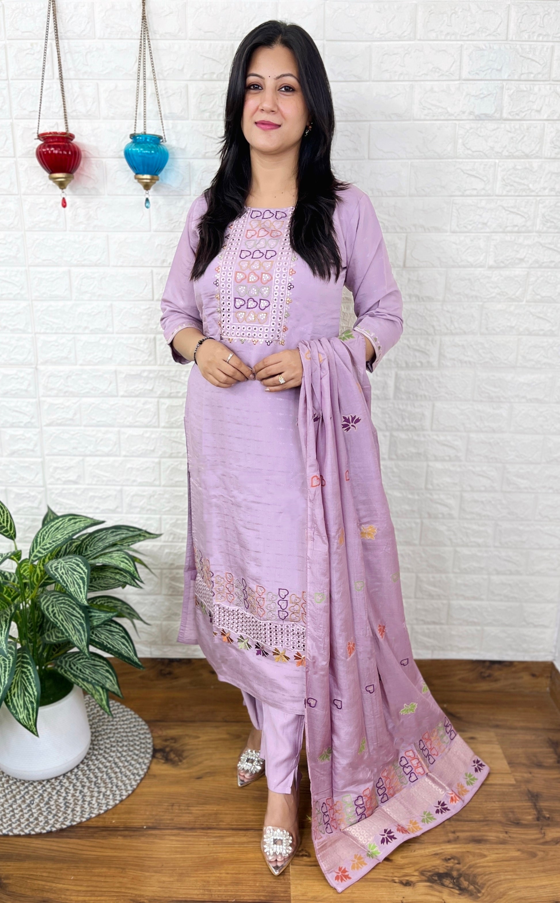The Muslin Thread Work Kurta Suit Set is the epitome of elegance and grace, making it a timeless addition to your wardrobe for those special moments that demand a touch of sophistication.