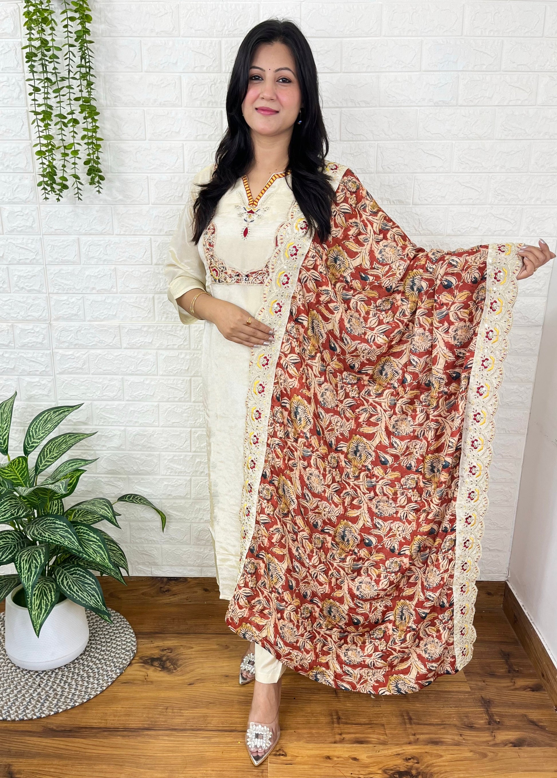 - Design: The dupatta is designed to complement a wide range of outfits, from traditional kurtas and suits to contemporary dresses. Its generous size allows for versatile styling, whether you drape it over your shoulders, wrap it around your neck, or let it flow freely.