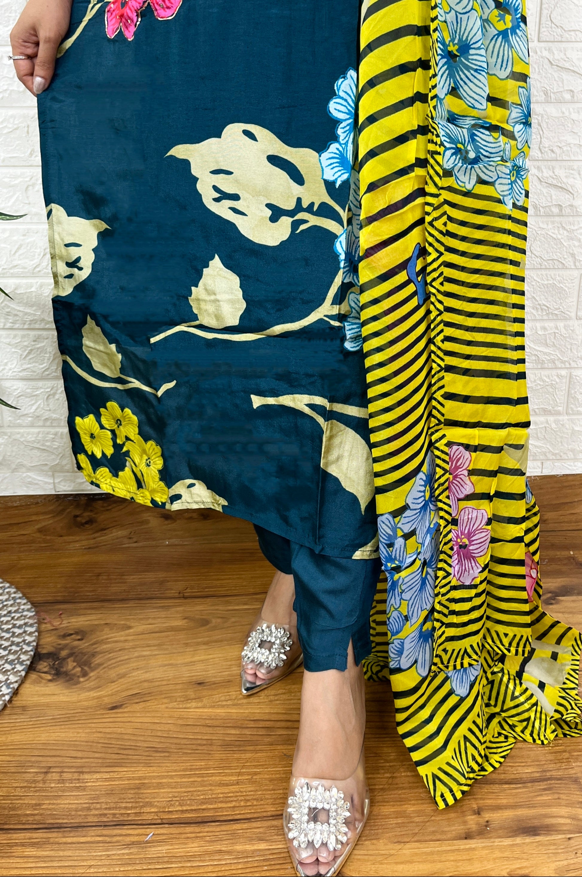 ✨ Peacock Blue Multi-Print Kurta Suit Set ✨
