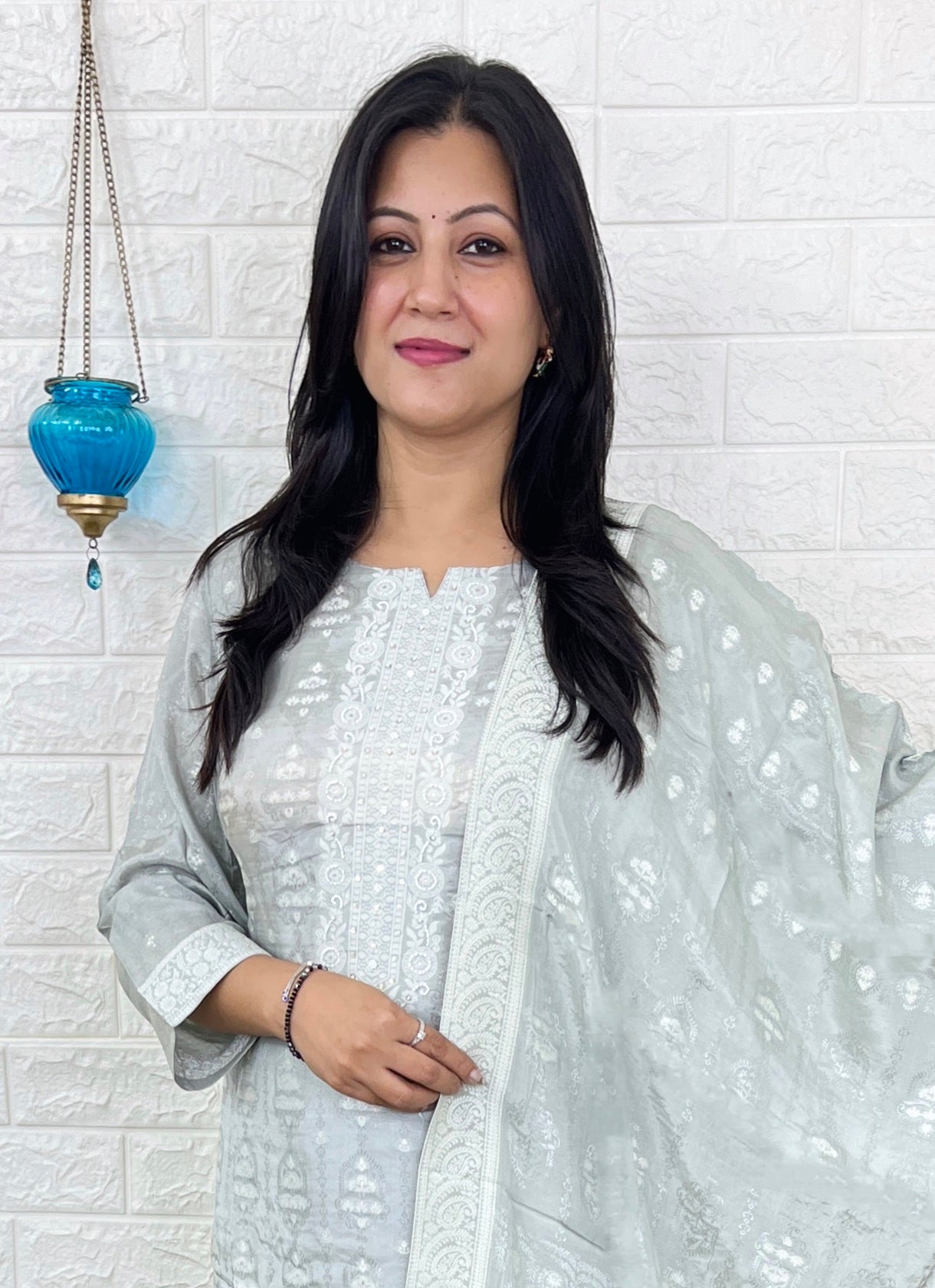 Ideal for weddings, festive celebrations, or elegant evening gatherings, this Silver Banarasi Kurta Suit Set makes a timeless addition to any wardrobe.
